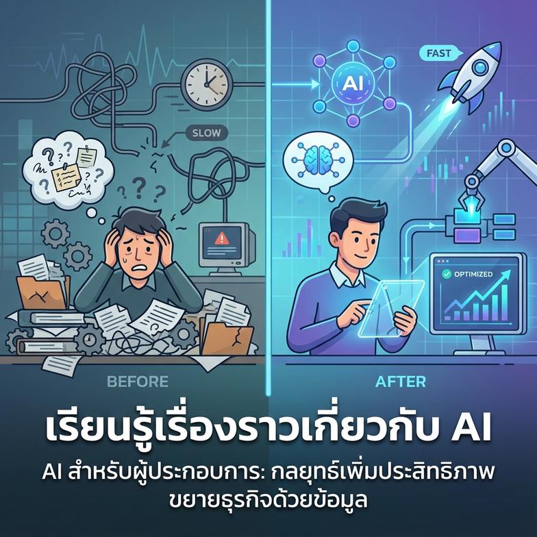 ในโลกธุรกิจที่เปลี่ยนแปลงอย่างรวดเร็ว ผู้ประกอบการ SME และ Startup มักเผชิญกับความท้าทายมากมาย ทั้งการแข่งขันที่ดุเดือด การบริหารทรัพยากรที่จำกัด และการตัดสินใจภายใต้ข้อมูลที่ไม่สมบูรณ์ การทำธุรกิจแบบเดิมอาจไม่เพียงพอต่อการเติบโตที่ยั่งยืนอีกต่อไปอย่างไรก็ตาม ยุคแห่งปัญญาประดิษฐ์ (AI) ได้เปิดประตูบานใหม่สำหรับ AI for Entrepreneurs เพื่อพลิกโฉมวิธีการดำเนินธุรกิจ ไม่ใช่แค่บริษัทขนาดใหญ่เท่านั้นที่สามารถเข้าถึงเทคโนโลยีนี้ แต่ผู้ประกอบการทุกคนก็มีโอกาสนำ AI มาใช้เป็นเครื่องมือสำคัญAI ไม่ใช่เรื่องไกลตัวอีกต่อไป แต่เป็นขุมพลังที่จะช่วยเพิ่มประสิทธิภาพการทำงาน ลดต้นทุน และสร้างโอกาสในการขยายธุรกิจที่เหนือกว่าคู่แข่ง ทำให้คุณมีข้อได้เปรียบทางการแข่งขันที่ชัดเจนในตลาดAI เข้ามาช่วยให้ผู้ประกอบการสามารถวิเคราะห์ข้อมูลจำนวนมหาศาลได้อย่างรวดเร็วและแม่นยำ พร้อมทั้งนำเสนอข้อมูลเชิงลึกที่ไม่เคยมองเห็นมาก่อน สิ่งนี้ทำให้การตัดสินใจทางธุรกิจมีประสิทธิภาพมากขึ้น นำไปสู่การเติบโตอย่างก้าวกระโดดกลยุทธ์ AI สำหรับผู้ประกอบการ: การเริ่มต้นที่ชาญฉลาด การนำ AI for Entrepreneurs มาใช้ในธุรกิจเริ่มต้นได้ไม่ยาก ระบุปัญหาหลักที่ต้องการแก้ไข เช่น การบริหารลูกค้าหรือการตลาด และประเมินข้อมูลที่มีว่าสามารถนำไปใช้กับ AI ได้อย่างไรควรเลือกโซลูชัน AI ที่ใช้งานง่าย พร้อมใช้งาน และไม่ซับซ้อนเกินไป การเริ่มจากโครงการนำร่องเล็กๆ จะช่วยให้เรียนรู้และสร้างความมั่นใจในการขยายผลในอนาคตได้อย่างมีประสิทธิภาพระบุปัญหา: ค้นหา "Pain Point" ชัดเจนที่ AI ช่วยได้จัดการข้อมูล: รวบรวมและเตรียมข้อมูลคุณภาพเลือกเครื่องมือ: เริ่มต้นด้วย AI Tools…
