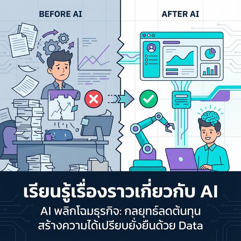 ในยุคที่การแข่งขันรุนแรง SMEs และ Startup เผชิญความท้าทายด้านต้นทุนและการบริหารจัดการแบบเดิมๆ ที่ไม่ตอบโจทย์อีกต่อไปทว่า AI นำเสนอโอกาสทอง องค์กรที่นำ AI strategy data มาใช้อย่างชาญฉลาด จะไม่เพียงอยู่รอด แต่ยังสร้างความได้เปรียบยั่งยืนบทความนี้จะเจาะลึกกลยุทธ์ AI เพื่อลดต้นทุน เพิ่มประสิทธิภาพ และปลดล็อกศักยภาพธุรกิจคุณ ด้วยแนวคิดที่จับต้องได้ ไม่ใช่แค่การขายฝันเราจะสำรวจว่า AI สามารถพลิกโฉมธุรกิจขนาดเล็กและขนาดกลางได้อย่างไร ตั้งแต่การบริหารภายในจนถึงการสร้างประสบการณ์ลูกค้าที่เหนือกว่าเข้าใจหัวใจ AI: เปลี่ยน Data เป็นพลังขับเคลื่อนธุรกิจ หัวใจ AI คือ “ข้อมูล” ที่เป็นน้ำมันหล่อเลี้ยงให้ AI เรียนรู้และทำงาน สำหรับ SMEs การรวบรวมและวิเคราะห์ข้อมูลลูกค้า คู่แข่ง และการดำเนินงานอย่างเป็นระบบ คือก้าวแรกAI ช่วยให้ธุรกิจเข้าใจข้อมูลเชิงลึกได้เร็วและแม่นยำกว่าการวิเคราะห์แบบดั้งเดิม เช่น พฤติกรรมการซื้อ หรือแนวโน้มตลาดCRM ที่ขับเคลื่อนด้วย AI: วิเคราะห์ลูกค้า คาดการณ์โอกาสขายแพลตฟอร์มวิเคราะห์ข้อมูลอัจฉริยะ: แปลงข้อมูลดิบเป็นรายงานและข้อเสนอแนะเชิงปฏิบัติการลงทุนใน AI เริ่มต้นง่ายๆ จากการใช้ข้อมูลที่มีอยู่ให้เกิดประโยชน์สูงสุด ค่อยๆ ขยายศักยภาพตามความพร้อม เพื่อสร้างรากฐานที่แข็งแกร่งกลยุทธ์ลดต้นทุนด้วย AI: เพิ่มประสิทธิภาพ ลดความสูญเปล่า ประโยชน์ชัดเจนของ…